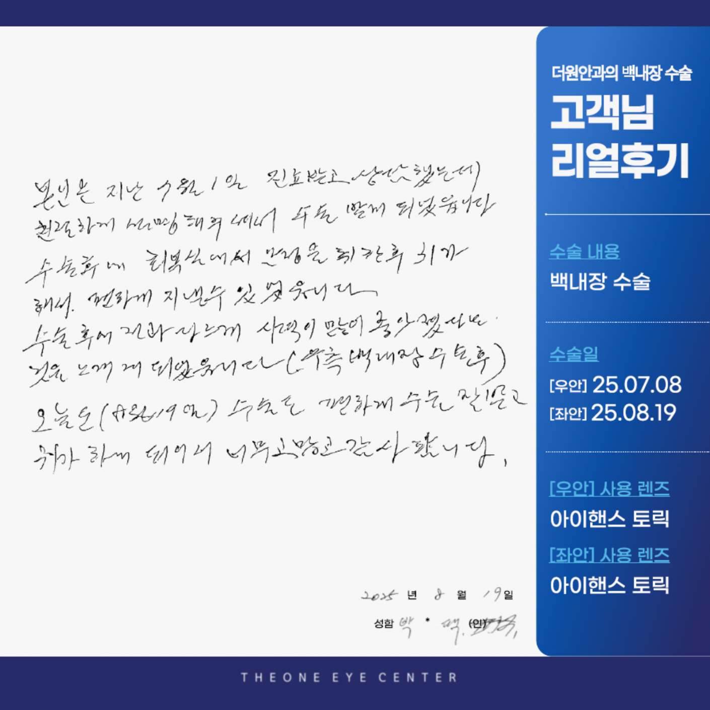 수술일 : [우안]25.07.08 [좌안]25.08.19